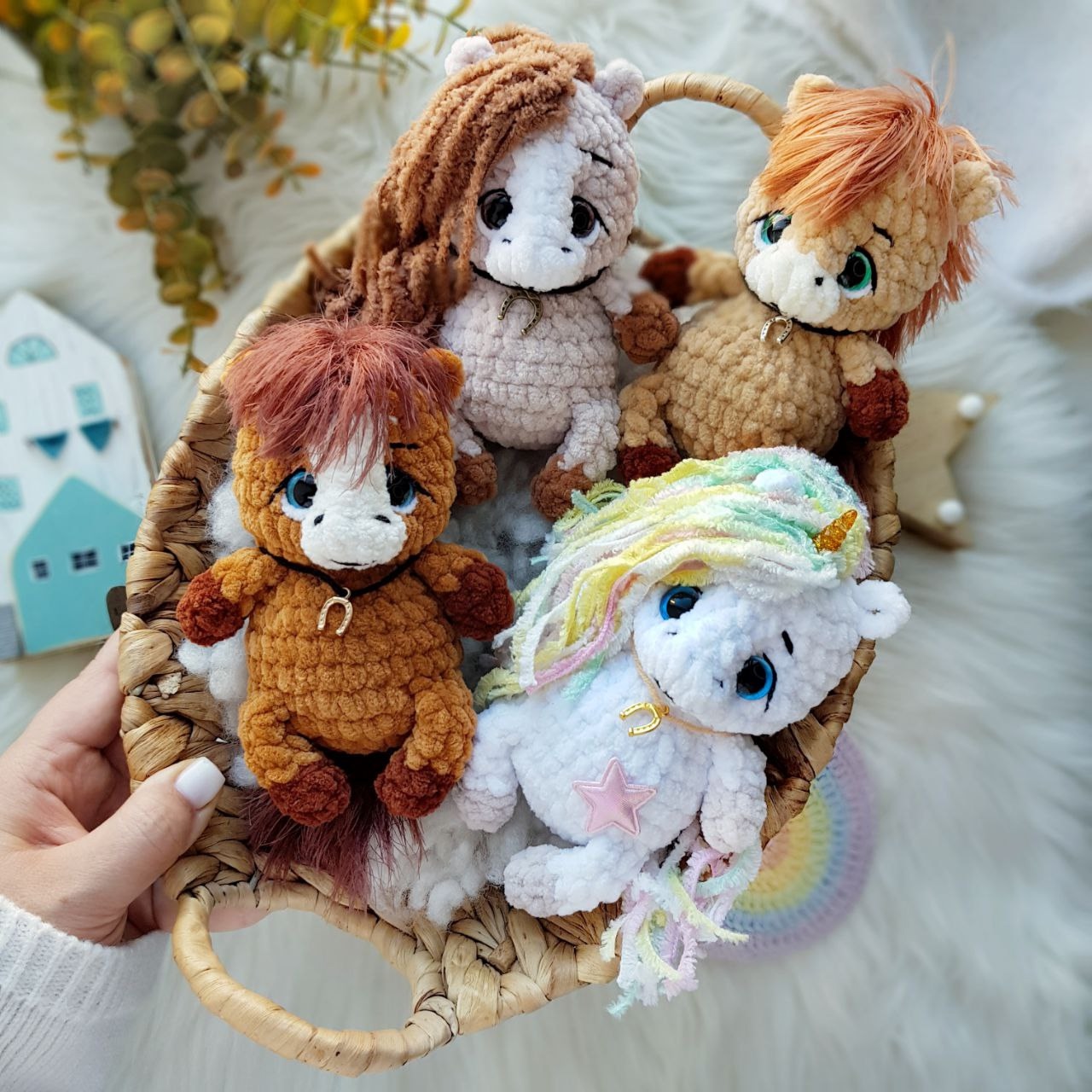 2. Фактурная пряжа Lanoso Single (около 5-7 грамм) или Alize Softy для оформления гривы и хвоста;