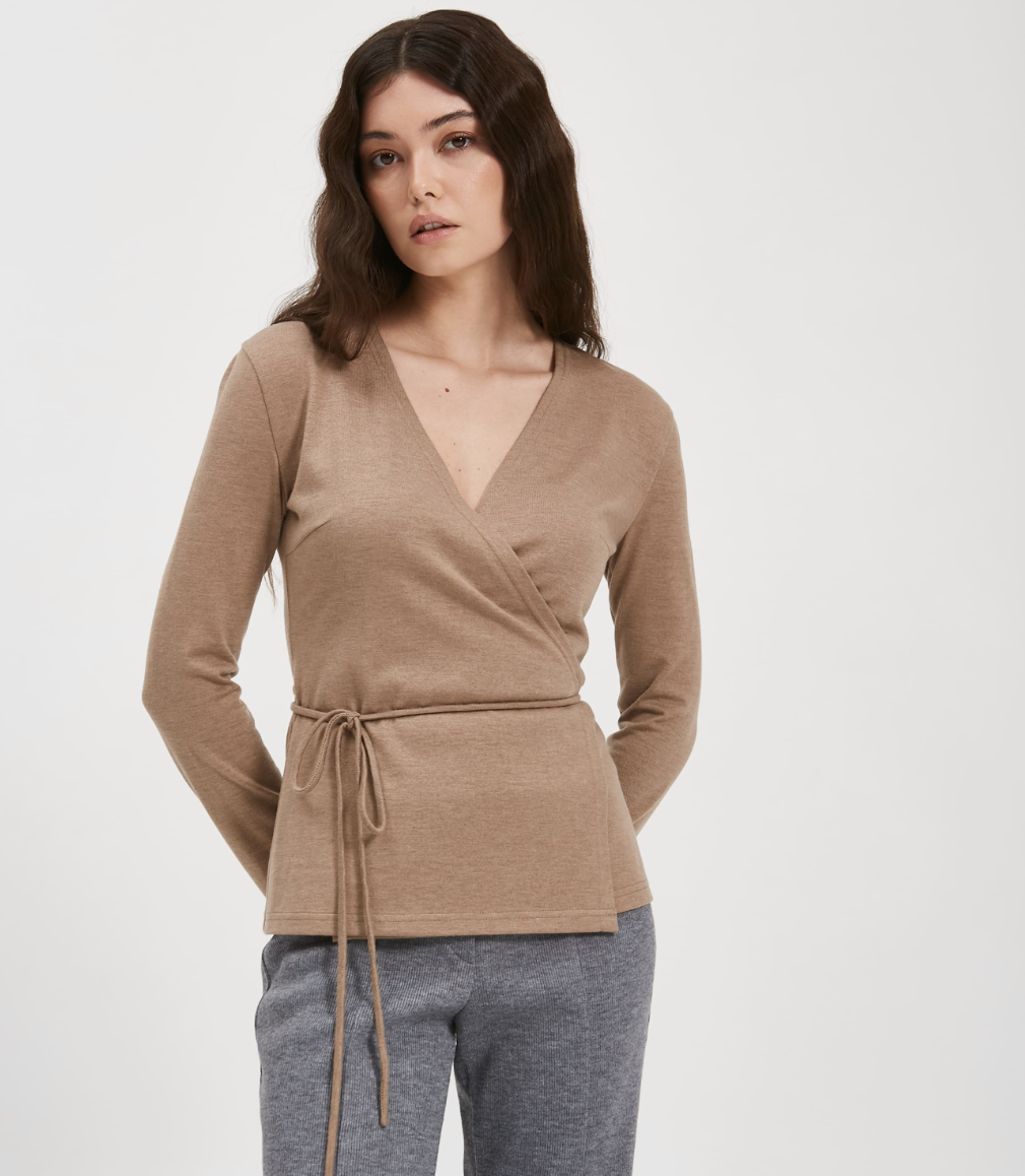 Кардиган прилегающего силуэта с втачным рукавом, с запахом на завязках. Перед с двумя нагрудными вытачками.