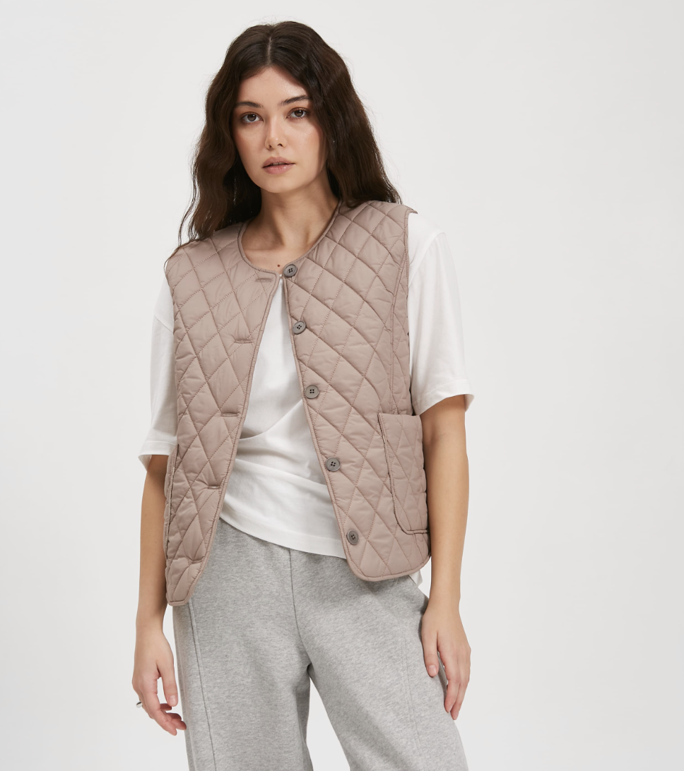 Изделие сшито из стеганной курточной ткани, состав полиэстер 100 %, плотность 220 гр/м².